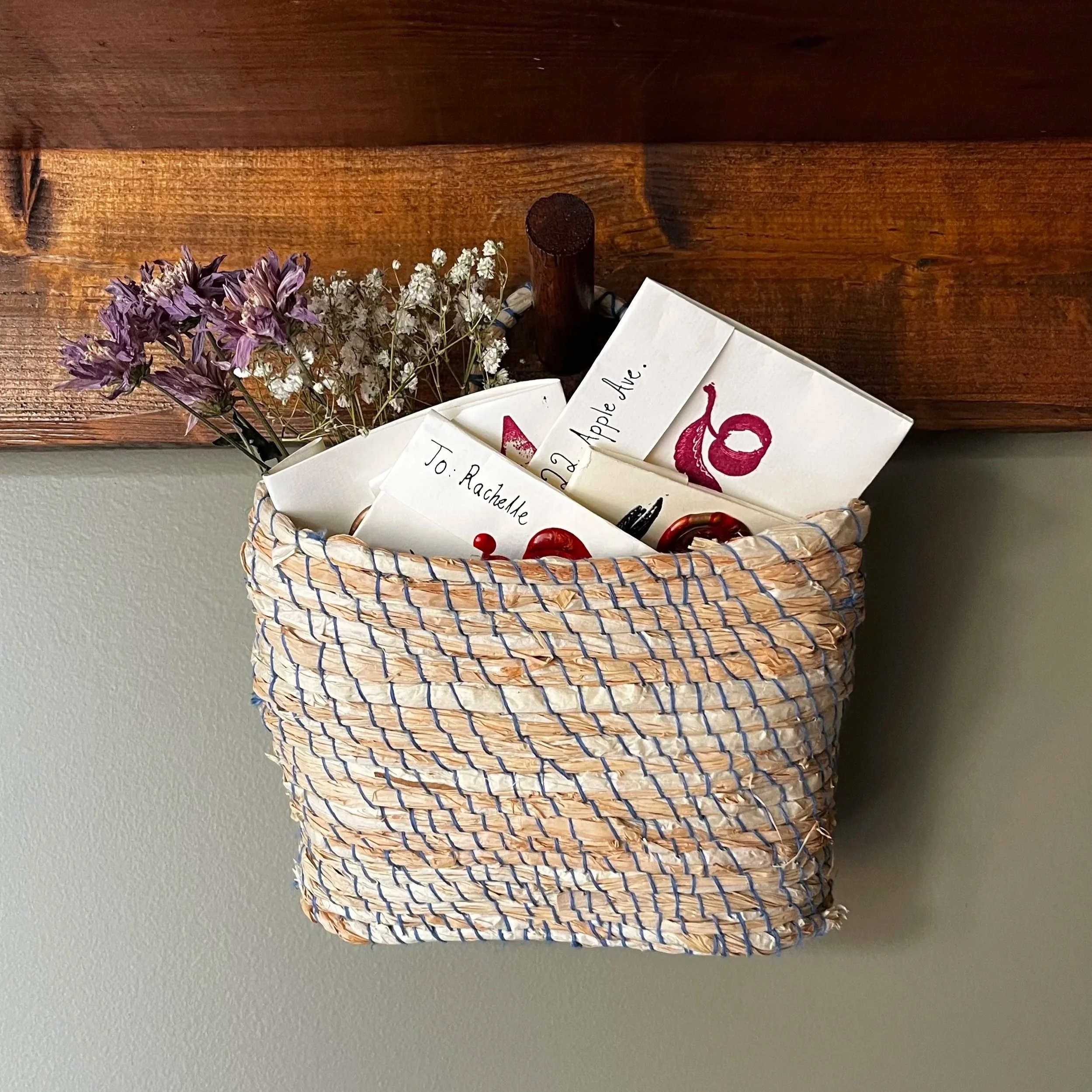 Abbey’s finished letter basket (empty) and Abbey’s finished letter basket (filled with letters)