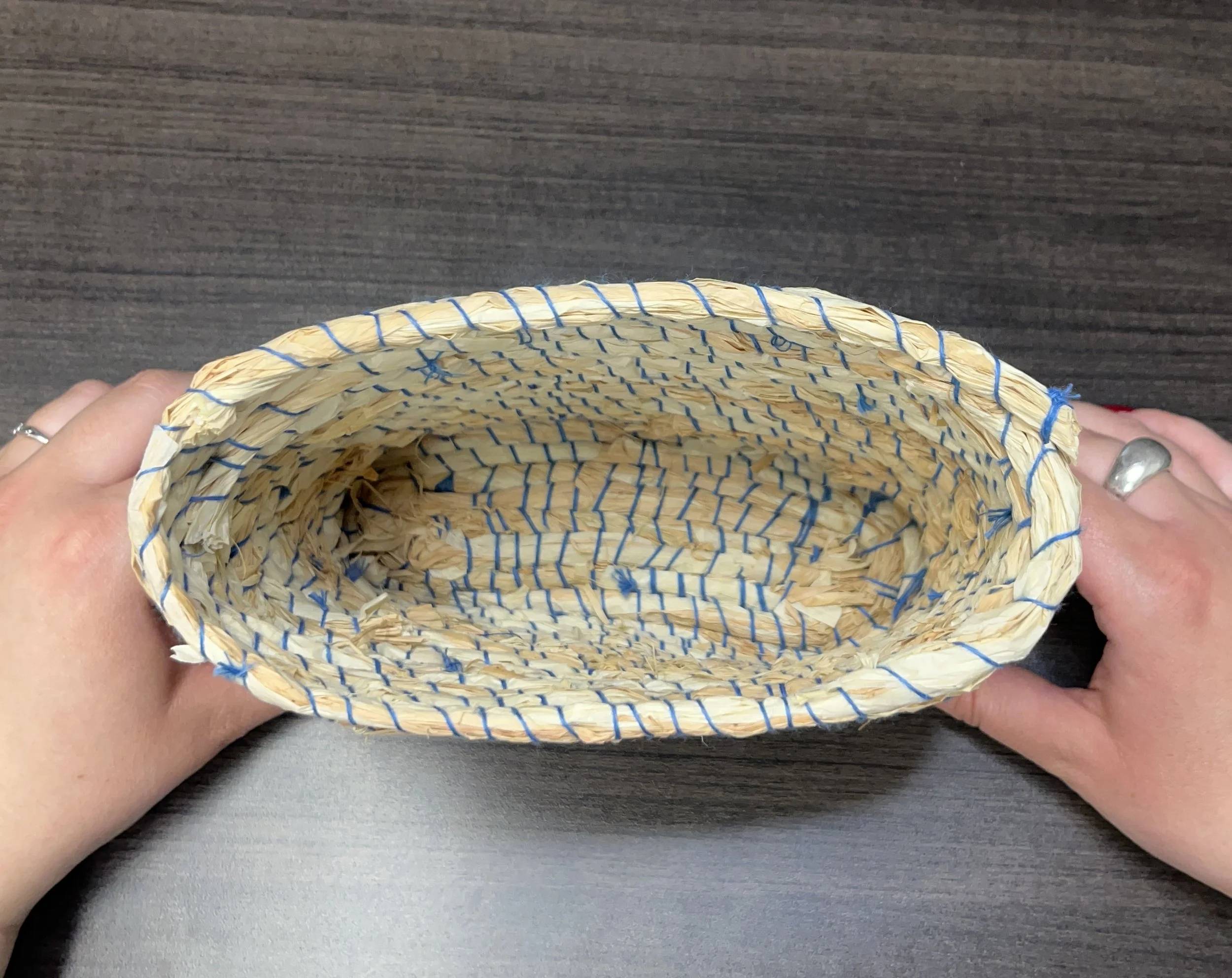 Once you have secured the final stitch of your basket, trim the remaining grass.